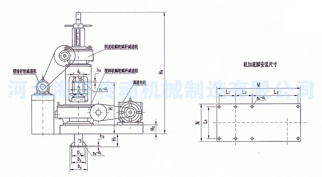 JWZ刮泥機驅(qū)動裝置采用單級蝸桿蝸輪減速傳動,可由