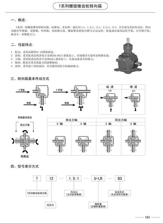 產(chǎn)品型號:T2、 T4 、T6 、T7 、T8、 T10、 T12、 T16 、T20、 T25 詳細(xì)說明:t系列螺旋傘齒輪,采用軸輸入,軸輸出結(jié)構(gòu),可單軸、多軸輸出,可正反方向旋轉(zhuǎn),結(jié)構(gòu)緊湊,占用空間小。因本公司專業(yè)生產(chǎn)銷售各類減速機及支架,大小品種規(guī)格繁多,價格按型號及規(guī)格的不同而不等,而在網(wǎng)上不能將同一系列的多個型號、多種規(guī)格一一列出