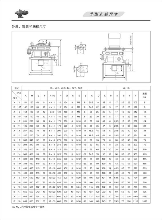 B、X系列擺線針輪減速機外型安裝尺寸