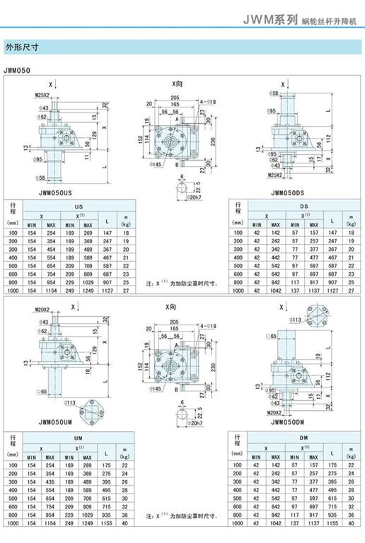 減速機(jī)|蝸輪絲桿升降機(jī)-JWM升降機(jī)050外形尺寸圖-海洋傳動