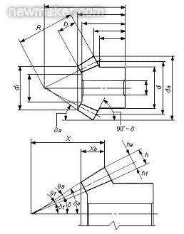 傘齒輪加工圖面及尺寸標注的標準范例, 比較進化的傘齒輪要項尺寸計算(表, 程序)中, 其尺寸, 強度計算項目的順序也都是依傘齒輪設(shè)計的程序順次排序. 其目的非常明顯。